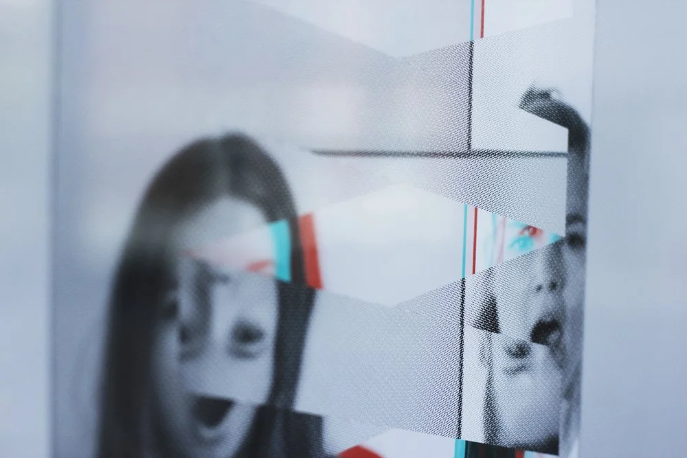 visual metaphors created using screen printing, digital collage and Anaglyph 3D –